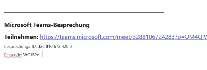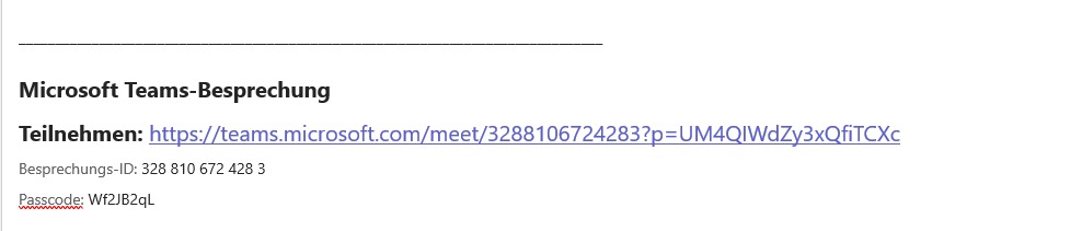 12. Eingeladene Teilnehmer erhalten einen Termin. Diesen müssen sie öffnen und dann auf den Link "An Microsoft Teams-Besprechung teilnehmen" klicken.