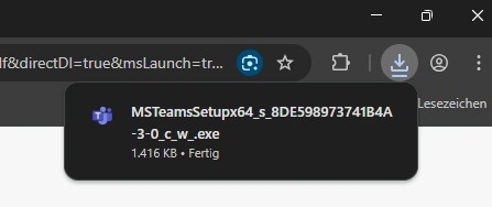 Teilnehmer besitzt Teams: Besitzt der Teilnehmer Teams bereits kann er die Besprechung in seinem eigenen Teams öffnen (1). Da durch öffnet sich Microsoft Teams und es kann beim Schritt 15 weiter gehen.