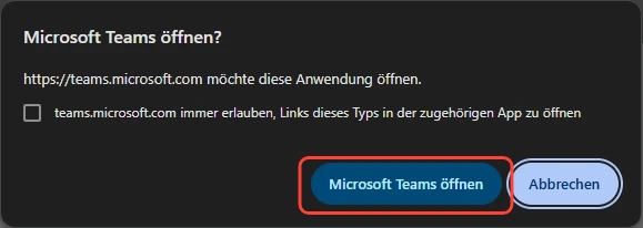 8. Wähle Sie "Microsoft Teams öffnen" aus.