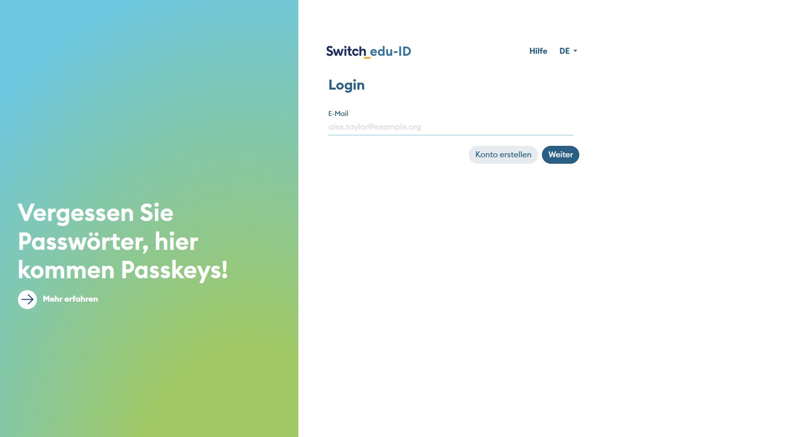 Wenn sie bereits ein EDU-ID Konto haben, melden sie sich nun mit ihrer SWITCH EDU-ID an. Wenn sie noch kein SWITCH EDU-ID Konto besitzen, können sie einen neues Konto erstellen. Tutorial: Wie erstelle ich ein Edu-Id Konto?