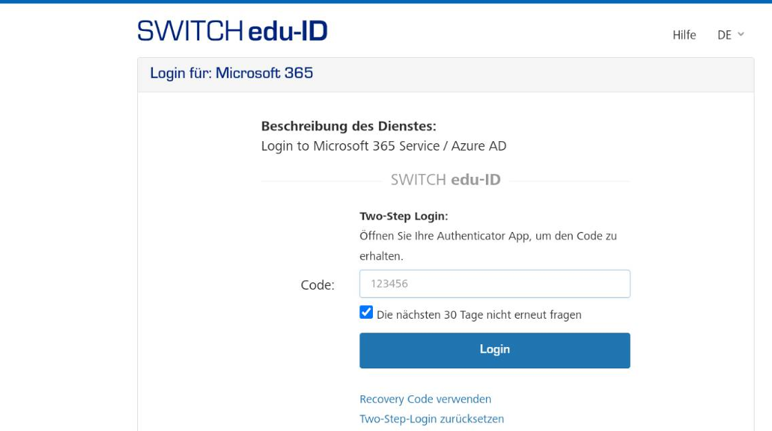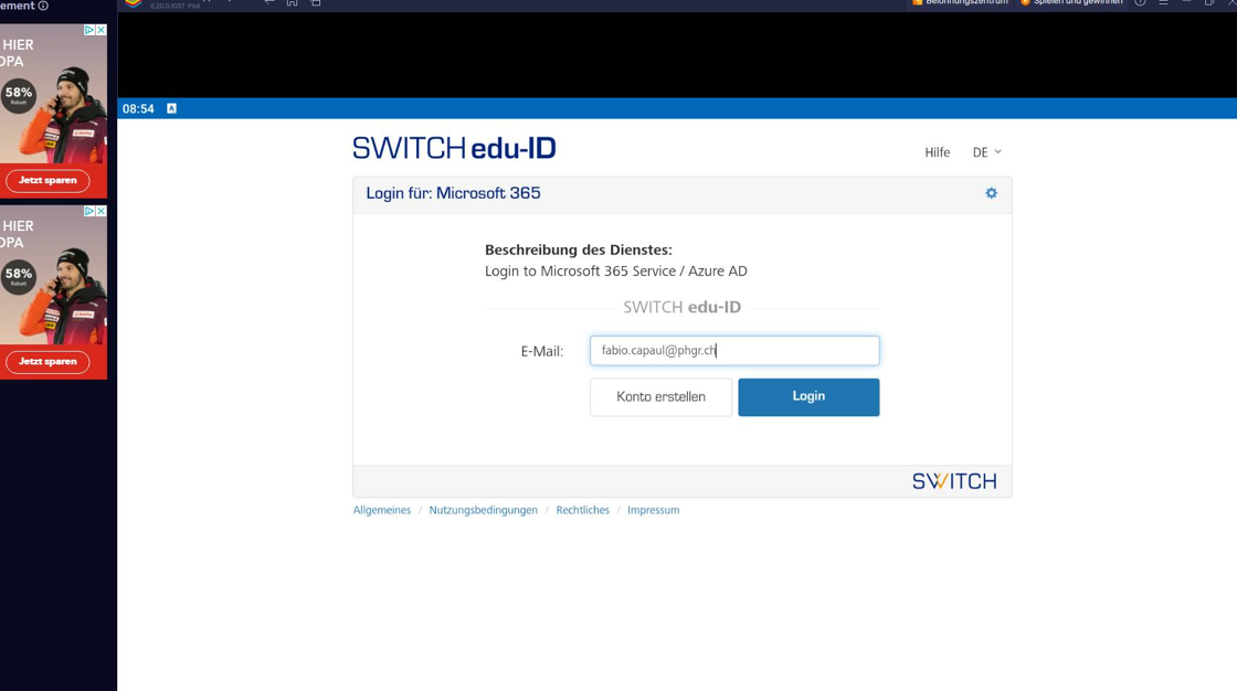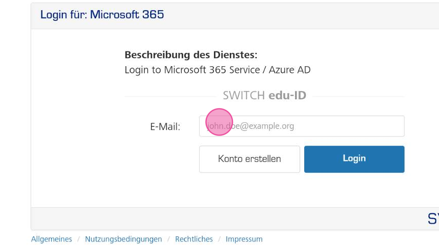 5. Sie sollten nun auf die Switch Edu-ID Seite weitergeleitet worden sein.