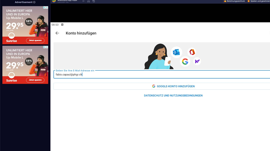 3. Geben Sie nun Ihre PHGR Mailadresse ein und klicken Sie auf Hinzufügen.