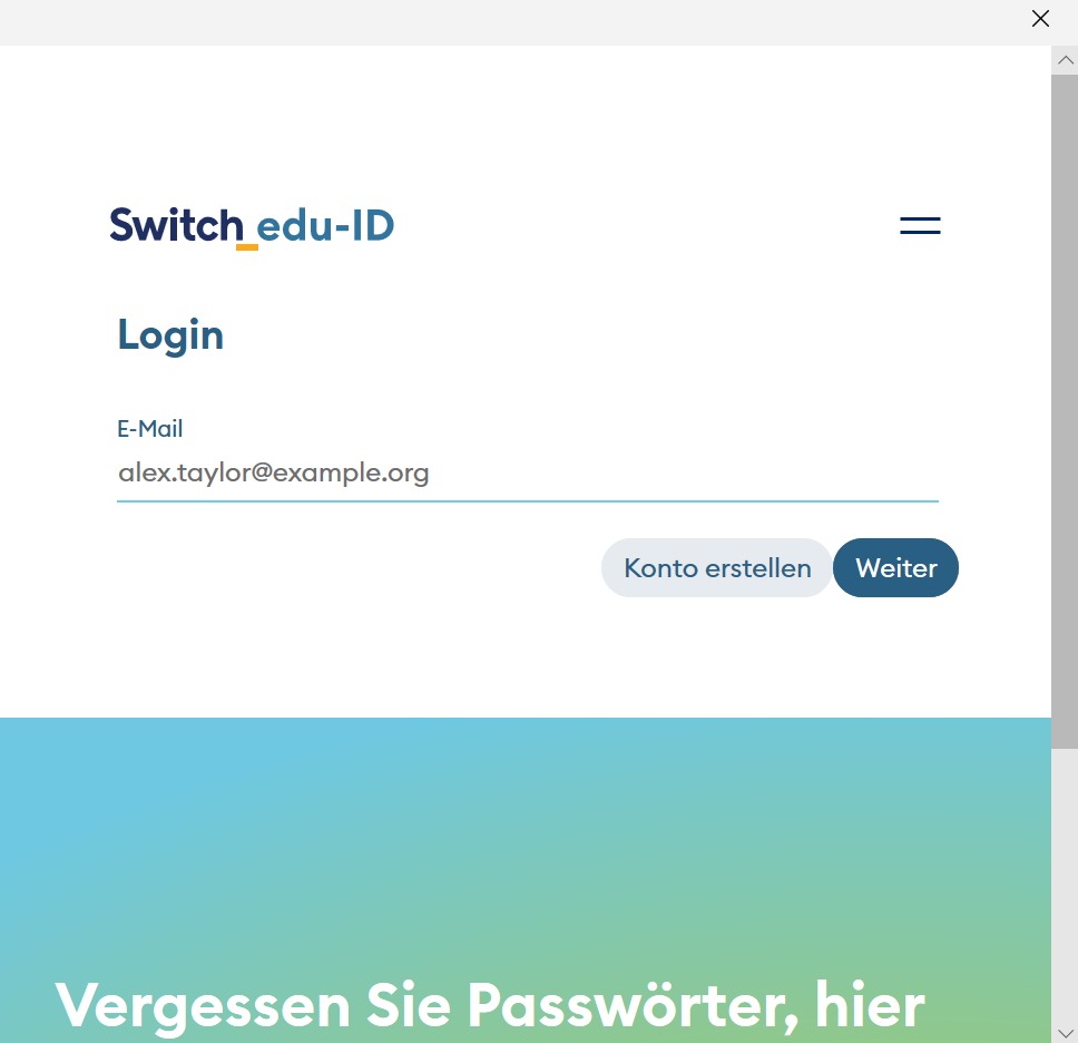 6. Wenn sie sich anmelden werden sie nun nach Ihrer Edu-ID gefragt, geben Sie diese ein.