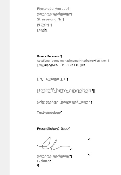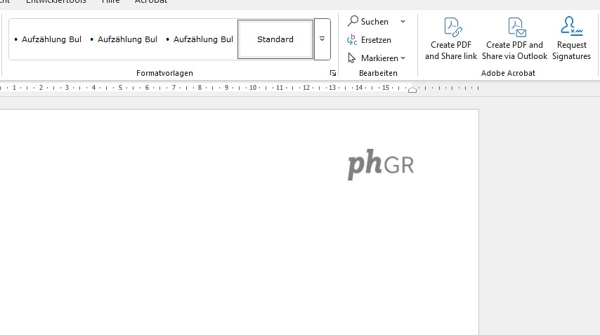 Die Standardvorlage sollte beim eröffnen eines neuen leeren Dokuments angezeigt werden. Diese zeichnet sich durch das Logo der PHGR auf der rechten oberen Seite ab.