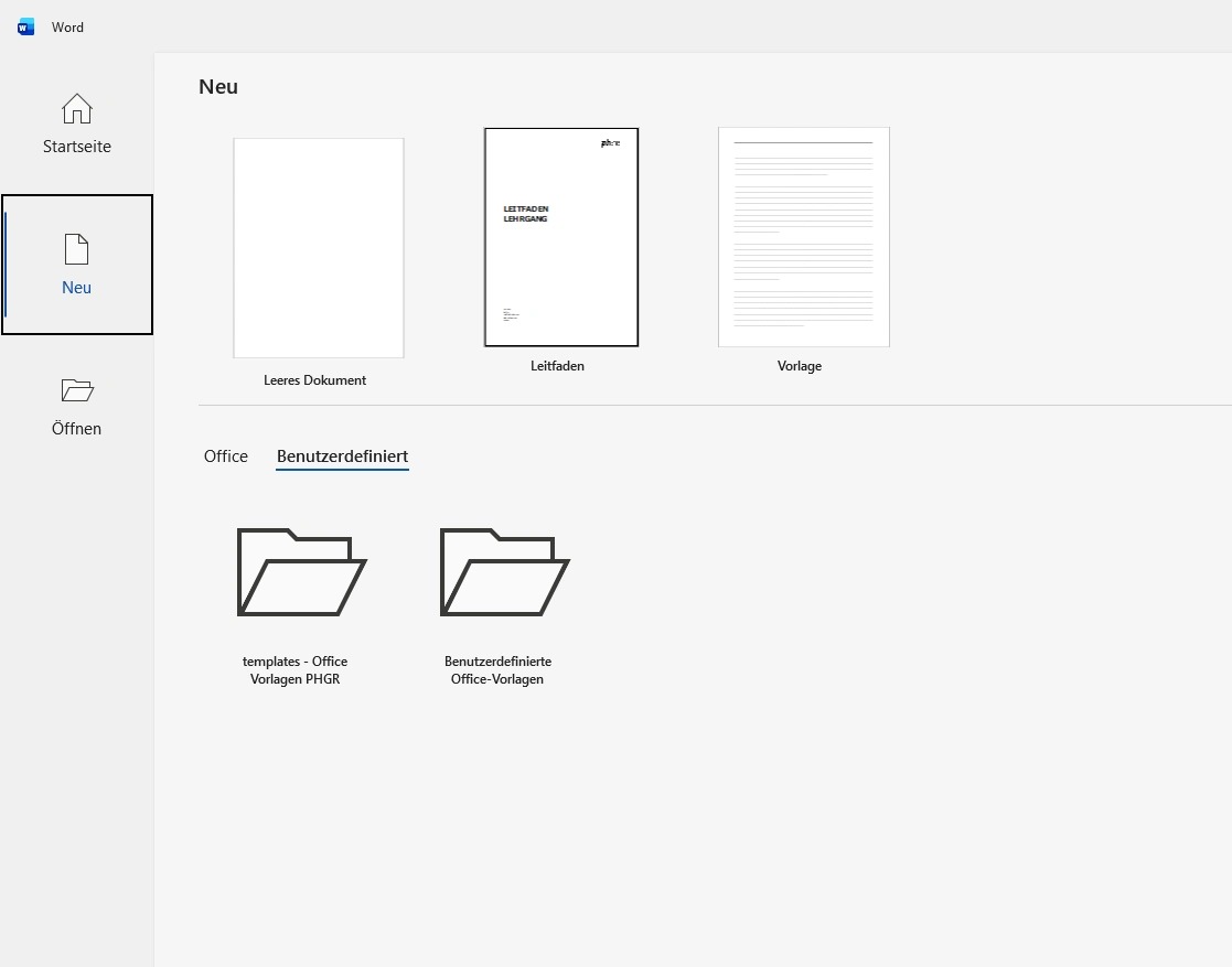 Wählen Sie nun den Tab "Benutzerdefiniert" aus. Von hier aus können Sie nun alle Vorlagen öffnen.