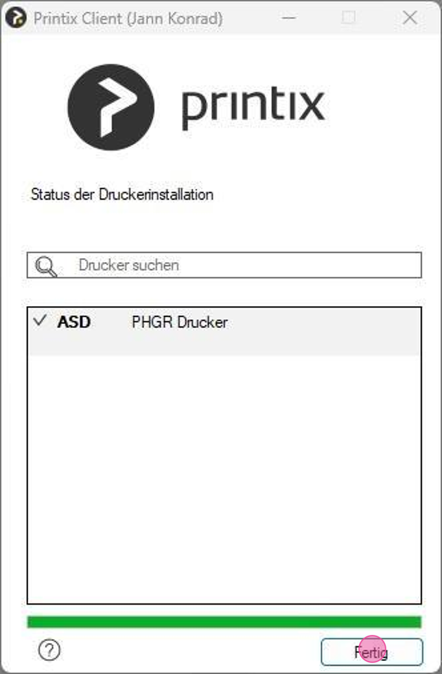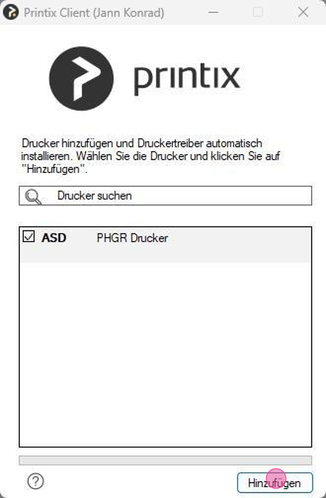1. Die Software Printx, welche für das Drucken an der PHGR notwendig ist, wurde bereits automatisch auf Ihrem PHGR-Notebook installiert. Nach der Installation wurden Sie zur Anmeldung mit Ihrer EDU-ID aufgefordert. Jetzt müssen sie den Drucker nur noch hinzufügen.