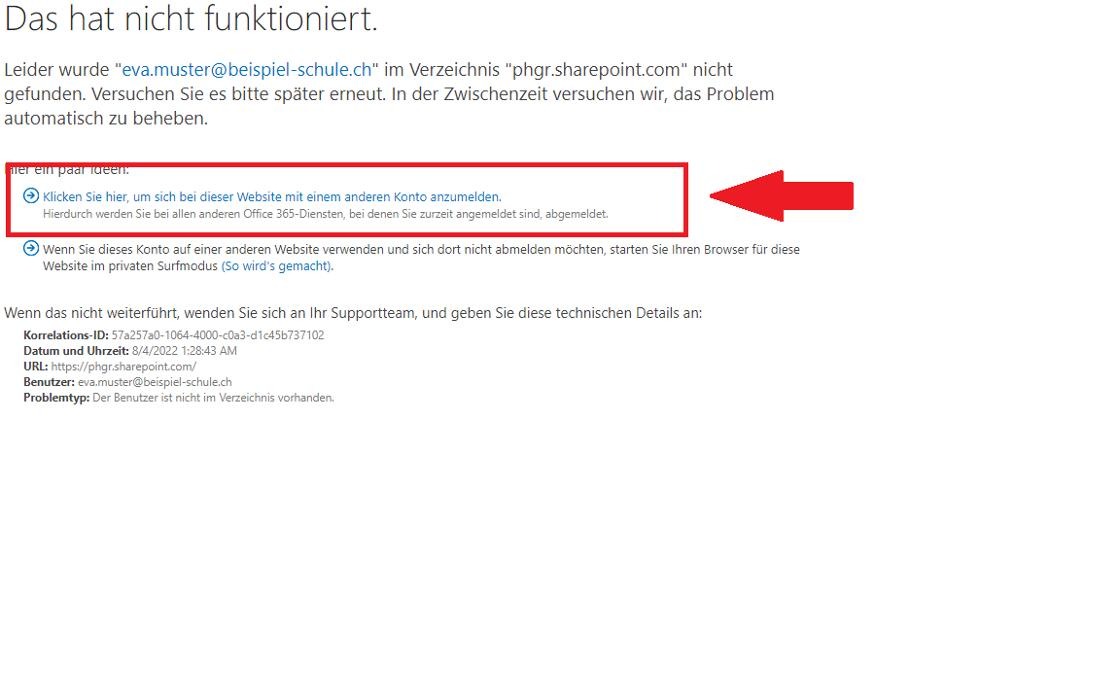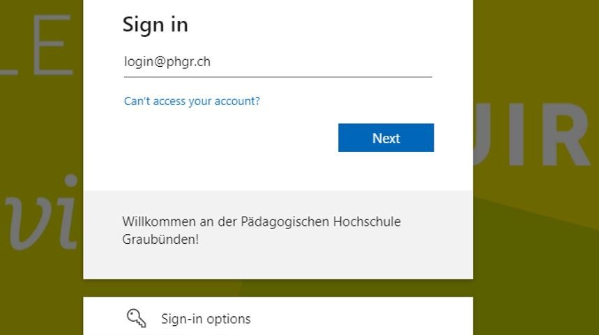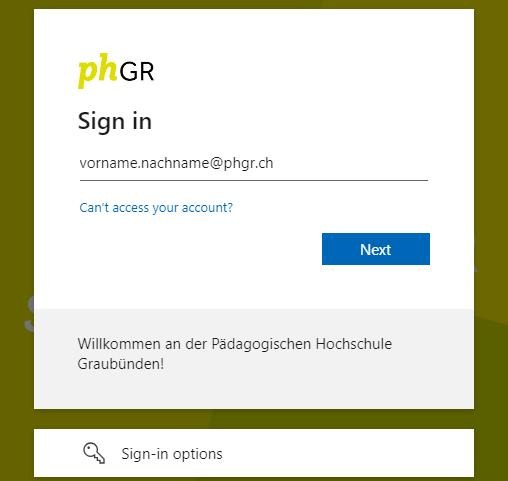 7. Falls ein anderer Link verwendet wurde, kann das folgende Loginfenster zusätzlich erscheinen. Dann "login@phgr.ch" eingeben.